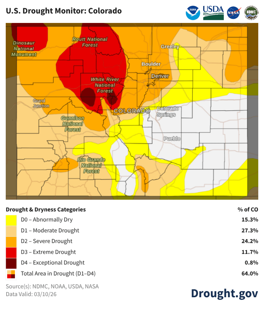 Mid-March over here and we are preparing for a growing season that will challenge us yet again. While last year was the toughest we’ve experienced, 2026 looks likely to be harder. We simply did not have winter at all this year. This week’s predicted heat dome will break records across the region and might push our highs into the mid 80s – in March. Snowpack across the American West is in many places at its lowest recorded levels ever, most Mesa reservoirs are at 20% or less of capacity, the Colorado River will not meet its obligations this year, and we are girding ourselves for a hot, dry and fiery season. Will the grasshoppers return? Probably; they thrive in drought conditions, unlike us.