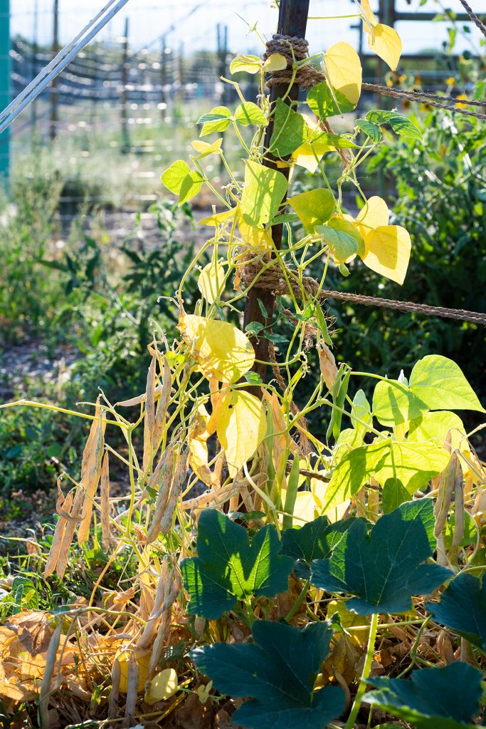 As with other annuals, the bean plants will also clearly demonstrate that they’re nearly finished for the season. These are labeled as ‘Aztec White’, but based on the small size I suspect they’re more along the lines of a true navy bean. Dry beans can stay on the vine until frost threatens, a huge bonus for the time-starved farmer; if there isn’t time to shell the beans immediately, they can be tossed into repurposed feed sacks and stored in a cool, dark, dry place, away from pests and damp. Shelling dry beans is a perfect project for a crisp, late fall day, when the more pressing tasks have been completed! Once they’re shelled I’ll hopefully have a better idea of the variety, although when it comes to heirloom beans I’m not hugely bothered about specifics, especially when seeds are freely shared amongst local growers. If the beans grow well and taste delicious, that’s really all that matters.
